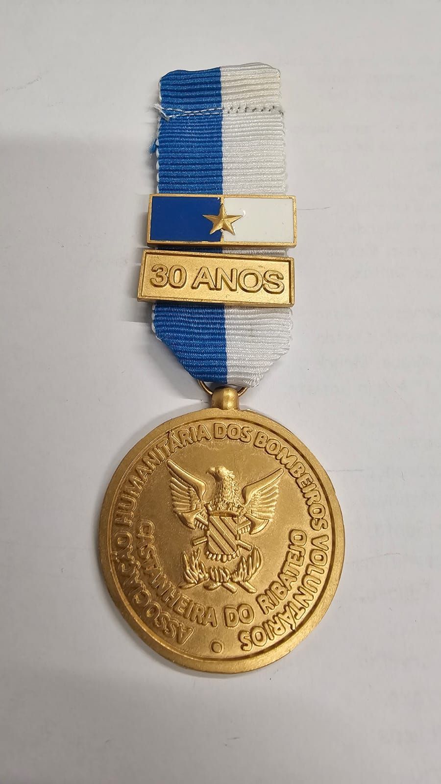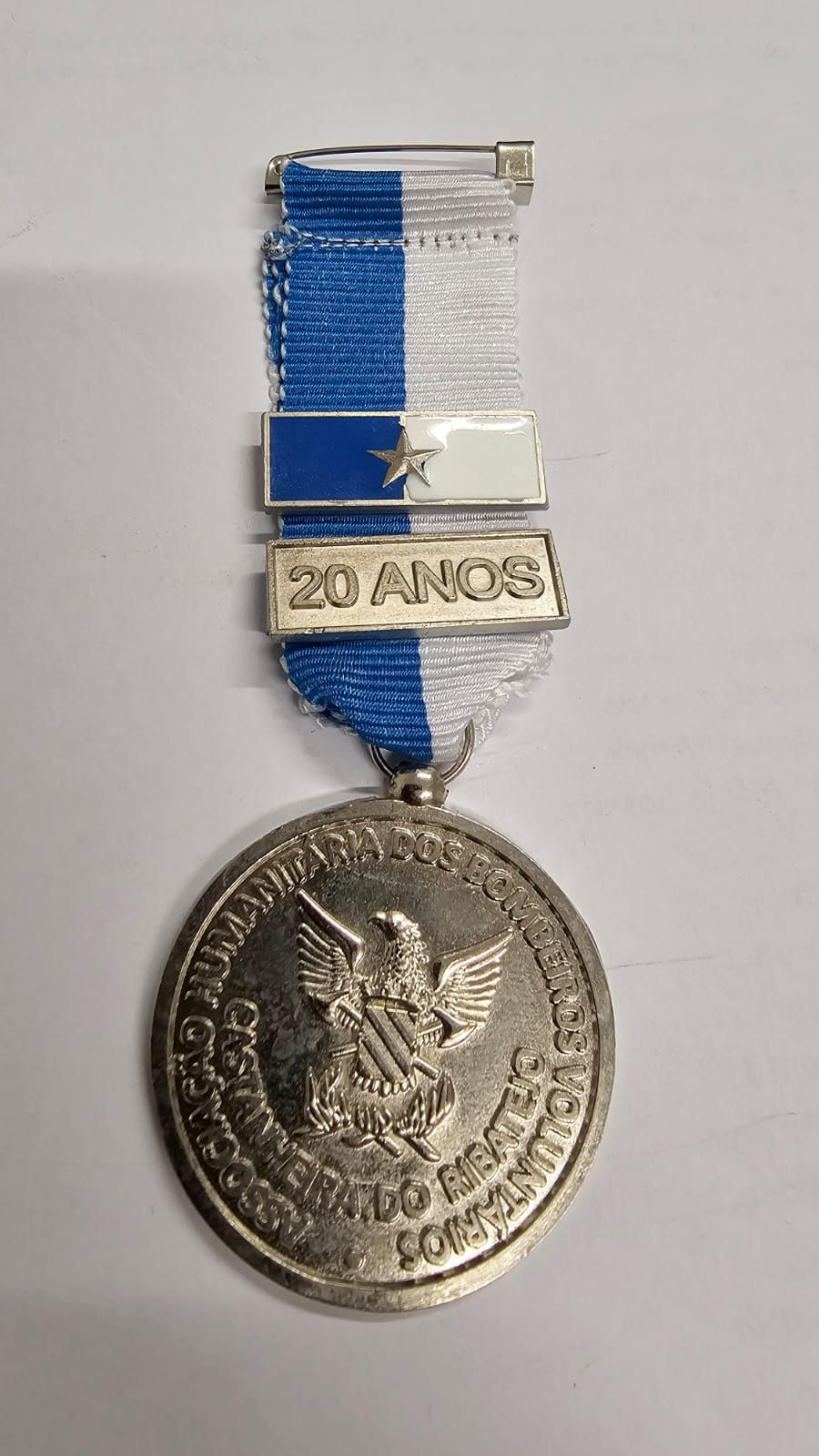 De ambos os lados cruzam-se dois machados que simbolizam os Bombeiros, soldados da paz. Logo na parte inferior, contém quatro achas em chamas, indicativas da atividade da Associação.